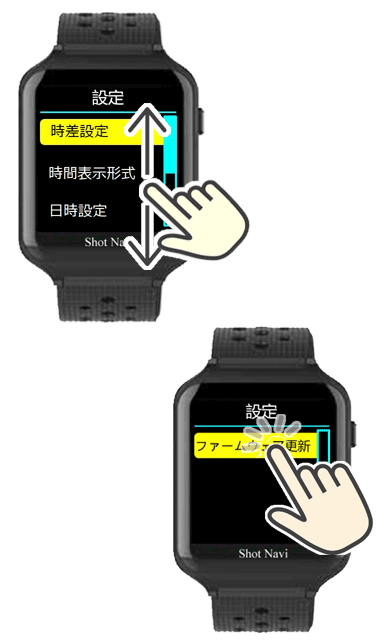 「設定」メニュー画面で上下にスワイプし、「ファームウェア更新」をタッチします