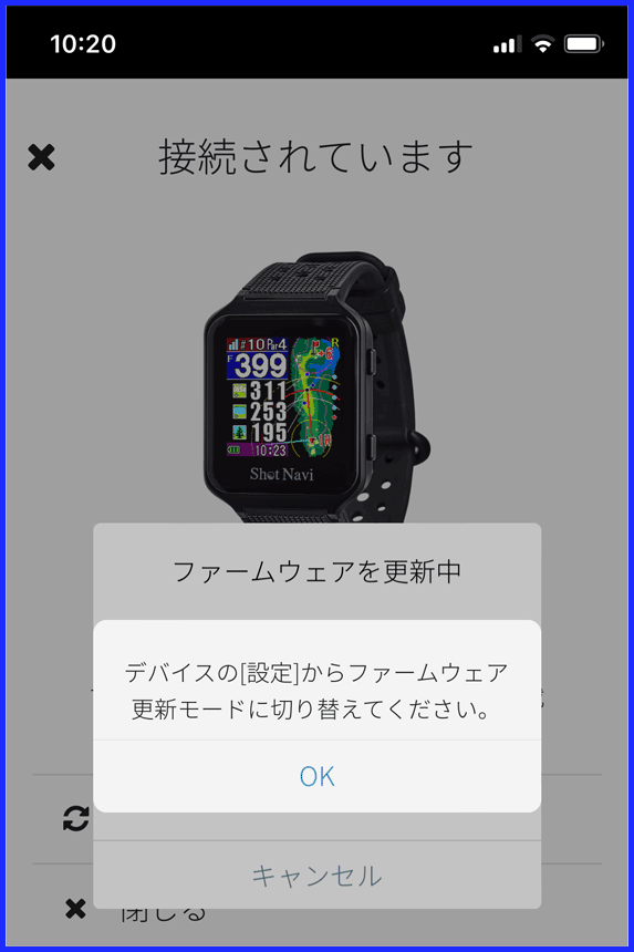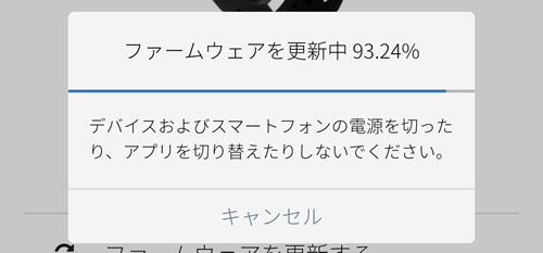 更新中に中断してしまった場合、アプリとの再接続で復帰できる可能性があります。 アプリの方で「デバイスと接続」を選択してください。