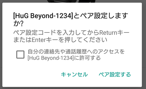 HuG Beyondの画面にペアリング完了またはBluetooth接続しましたと表示されればペア設定完了です!