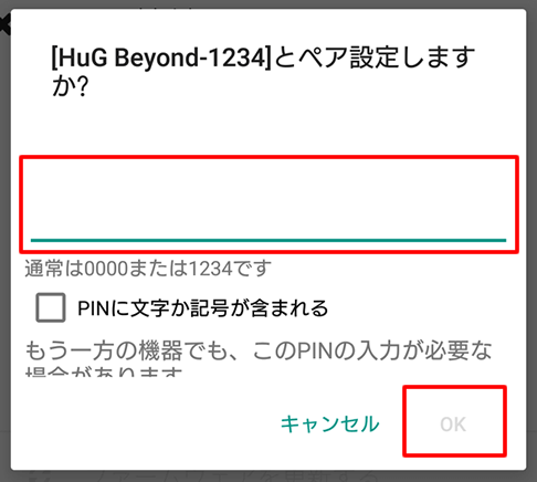 数字の入力を求められたら、HuG Beyond に表示された数字6桁(PINコード)を入力してOKを押します