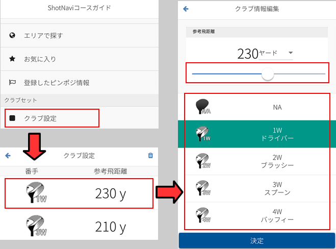 アプリで最近登録したお気に入りゴルフ場7件が表示され、デバイスのゴルフ場データが最新かどうかチェックを行います。