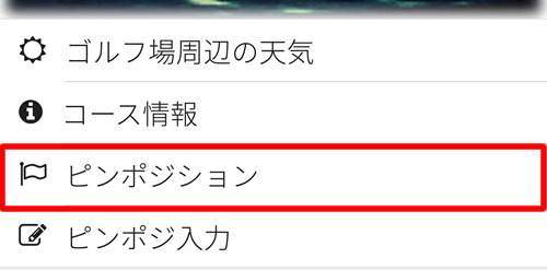 ゴルフ場情報の画面に戻るとピンポジションが追加されているので選択します
