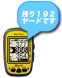 電源ボタンの1プッシュで音声でグリーンセンターまでの距離を案内します。