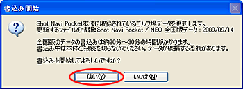 書込みを開始します。 更新データの日付を確認し はい をクリックしてください。