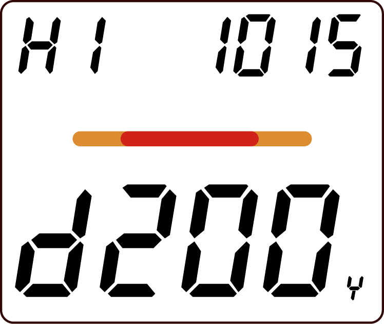 透明液晶部分に距離等を表示します。高低差・パット距離計測時には、パネルに印字された赤とオレンジのラインが一直線になるように照準を合わせます。