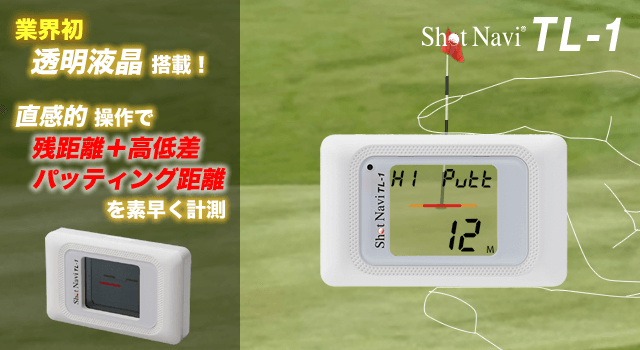 高低差の計測もTL1なら楽々!グリーンに向かって透明液晶を覗き込み、上部のボタンを押し続けて照準を合わせるだけ。より直感的に高低差の計測が行えます。