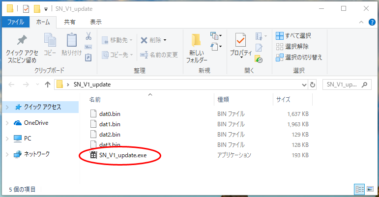 SN_V1_update( .exe ) をダブルクリックしてください。