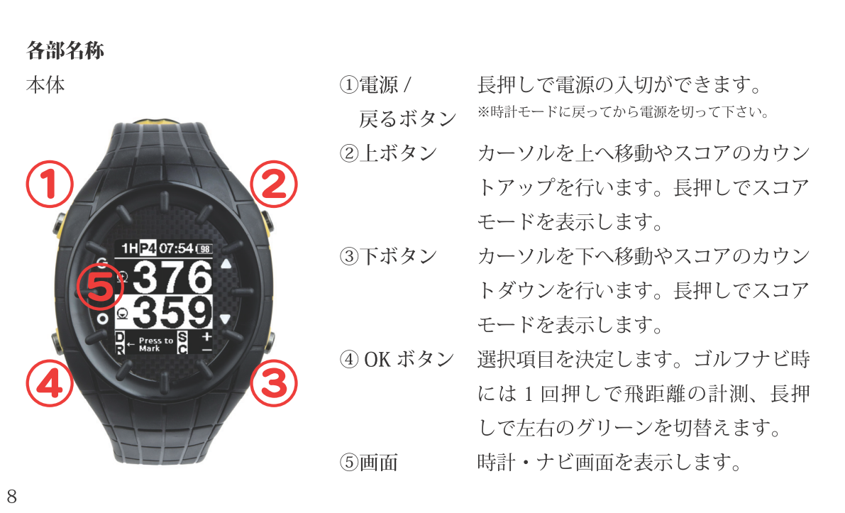 腕時計タイプ 製品概要 取扱説明書取説 よくあるご質問FAQ 時計の合わせ方 Shot Navi Watch マニュアル Shot Navi Watch の取扱説明書(PDFファイル)はこちら 更新方法はこちらをご覧ください ShotNaviファミリー現行機種 AIR EX 驚愕の軽さ&タッチパネル Evolve PRO Touch 最大級画面&タッチパネル搭載! Infinity グリーンを攻めろ! Evolve PRO 業界最大サイズディスプレイ! Granz 最小・最軽量カラーハンディ AIR 驚愕の軽さ&タッチパネル超コンパクト Crest フラグシップモデル新色登場 Evolve 屋外での視認性抜群!大人気ベストセラー BeyondLite カラー液晶&リーズナブル大好評販売中 HuG Beyond 屋外での視認性抜群!ベストセラー Neo2hp コンパクトな手持ち型音声案内やデカ文字機能も V2 ワンプッシュで音声案内!簡単・ラクラク操作 Laser Sniper ELUA サブLCD搭載高速計測、広視野ファインダー Voice Laser Red Leo 赤色OLEDで視認性抜群多数のプロが使用中 Laser Sniper nano 世界最小・最軽量級大好評販売中! Voice Laser Leo 音声操作で手ブレを軽減1000Y計測、高速測量 X1 Fit2 1000 手のひらにフィット!コンパクトながら1000Y計測